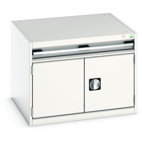 Zásuvkové skrine Bott Cubio so zásuvkami s nosnosťou 75 kg a 100% výsuvmi na valčekových ložiskách. zámku aj blokácia otvorenia viacerých zásuviek naraz. Ergonomické rukoväte s popisovateľnou lištou, uzamykanie cylindrickým zámkom s dvoma kľúčmi. Max. zaťaženie police (kg) : 75 kg Max. zaťaženie (kg) : 1500 kg