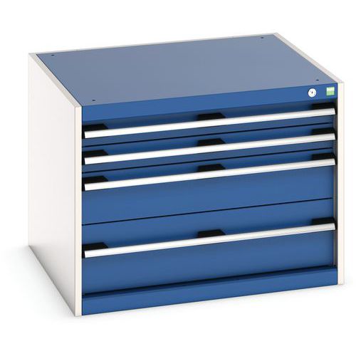 - Zásuvkové skrine Bott Cubio so zásuvkami s nosnosťou 75 kg a 100% výsuvy na valčekových ložiskách.