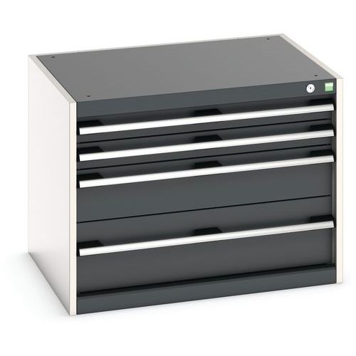 - Zásuvkové skrine Bott Cubio so zásuvkami s nosnosťou 75 kg a 100% výsuvy na valčekových ložiskách.