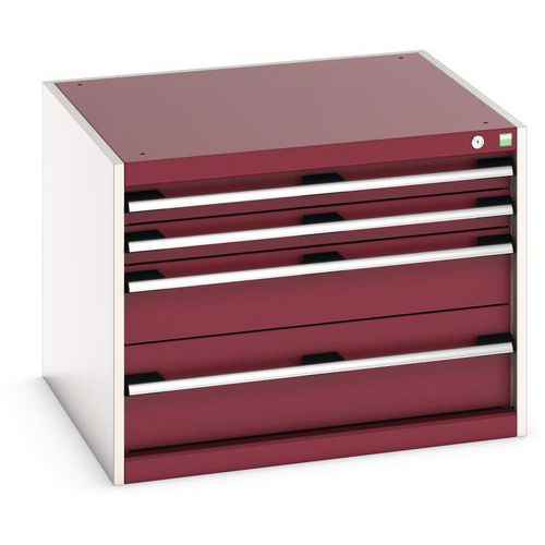 Dielenská zásuvková skriňa Bott Cubio, 60 x 80 x 75 cm, 4 zásuvky, šedá-červená