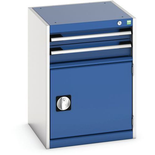 Dielenská zásuvková skriňa Bott Cubio, 70 x 52,5 x 52,5 cm, 2 zásuvky, 1 skrinka, šedá-modrá Dielenská zásuvková skriňa Bott Cubio, 70 x 52,5 x 52,5 cm, 2 zásuvky, 1 skrinka, šedá-modrá