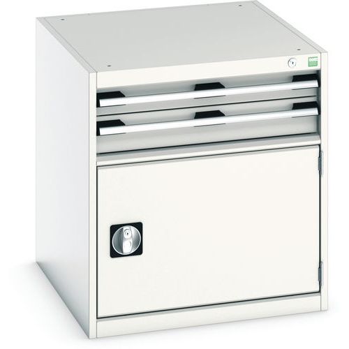 Zásuvkové skrine Bott Cubio so zásuvkami s nosnosťou 75 kg a 100% výsuvmi na valčekových ložiskách. zámku aj blokácia otvorenia viacerých zásuviek naraz. Ergonomické rukoväte s popisovateľnou lištou, uzamykanie cylindrickým zámkom s dvoma kľúčmi.