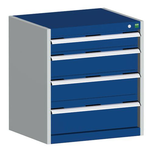- Zásuvkové skrine Bott Cubio so zásuvkami s nosnosťou 75 kg a 100% výsuvy na valčekových ložiskách.
