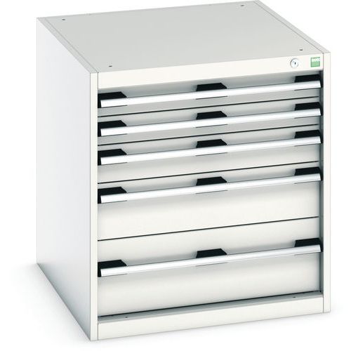 - Zásuvkové skrine Bott Cubio so zásuvkami s nosnosťou 75 kg a 100% výsuvy na valčekových ložiskách.