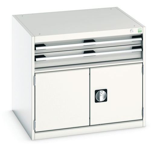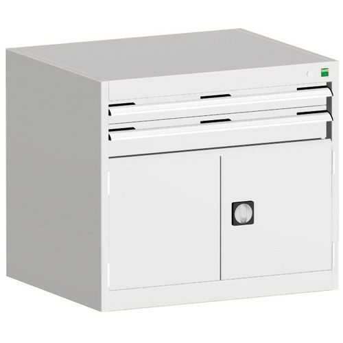 Zásuvkové skrine Bott Cubio so zásuvkami s nosnosťou 75 kg a 100% výsuvmi na valčekových ložiskách. zámku aj blokácia otvorenia viacerých zásuviek naraz. Ergonomické rukoväte s popisovateľnou lištou, uzamykanie cylindrickým zámkom s dvoma kľúčmi. Max. zaťaženie police (kg) : 75 kg Max. zaťaženie (kg) : 1500 kg