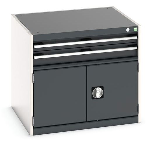 Zásuvkové skrine Bott Cubio so zásuvkami s nosnosťou 75 kg a 100% výsuvmi na valčekových ložiskách. zámku aj blokácia otvorenia viacerých zásuviek naraz. Ergonomické rukoväte s popisovateľnou lištou, uzamykanie cylindrickým zámkom s dvoma kľúčmi.