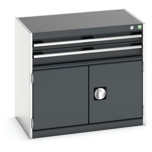 Zásuvkové skrine Bott Cubio so zásuvkami s nosnosťou 75 kg a 100% výsuvmi na valčekových ložiskách. zámku aj blokácia otvorenia viacerých zásuviek naraz. Ergonomické rukoväte s popisovateľnou lištou, uzamykanie cylindrickým zámkom s dvoma kľúčmi.