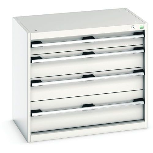 - Zásuvkové skrine Bott Cubio so zásuvkami s nosnosťou 75 kg a 100% výsuvy na valčekových ložiskách.