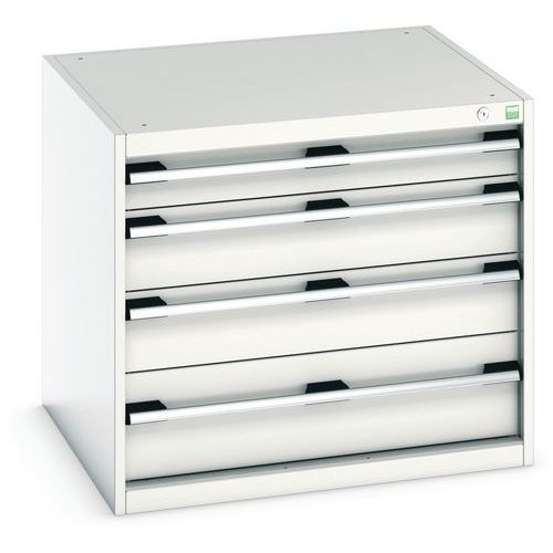 - Zásuvkové skrine Bott Cubio so zásuvkami s nosnosťou 75 kg a 100% výsuvy na valčekových ložiskách.