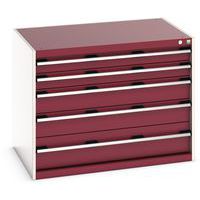 Dielenská zásuvková skriňa Bott Cubio, 80 x 105 x 75 cm, 5 zásuviek, šedá-červená