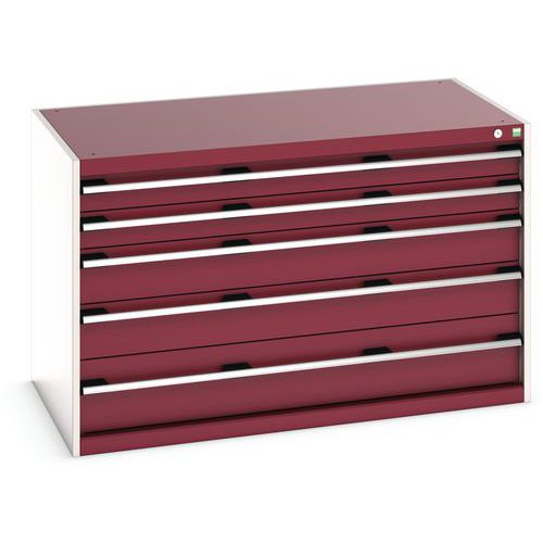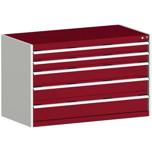 Dielenská zásuvková skriňa Bott Cubio, 80 x 130 x 75 cm, 5 zásuviek, šedá-červená