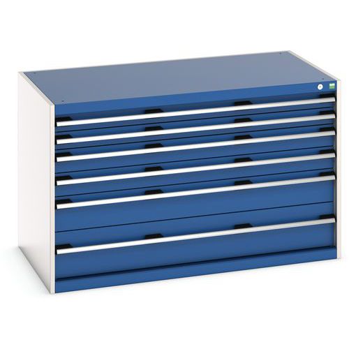 Dielenská zásuvková skriňa Bott Cubio, 80 x 130 x 75 cm, 6 zásuviek, šedá-modrá