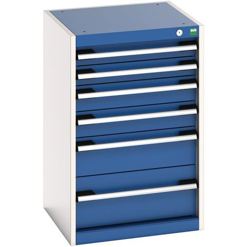 Dielenská zásuvková skriňa Bott Cubio, 80 x 52,5 x 52,5 cm, 6 zásuviek, šedá-modrá