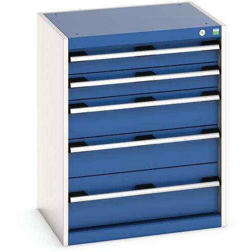 Dielenská zásuvková skriňa Bott Cubio, 80 x 65 x 52,5 cm, 5 zásuviek, šedá-modrá
