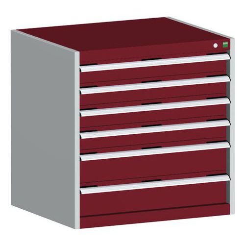 Dielenská zásuvková skriňa Bott Cubio, 80 x 80 x 65 cm, 6 zásuviek, šedá-červená