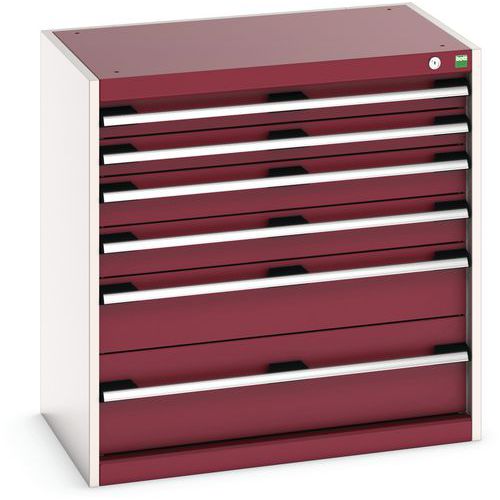 Dielenská zásuvková skriňa Bott Cubio, 80 x 80 x 52,5 cm, 6 zásuviek, šedá-červená