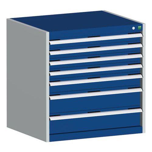 Dielenská zásuvková skriňa Bott Cubio, 80 x 80 x 52,5 cm, 7 zásuviek, šedá-modrá