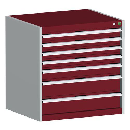 Dielenská zásuvková skriňa Bott Cubio, 80 x 80 x 75 cm, 7 zásuviek, šedá-červená