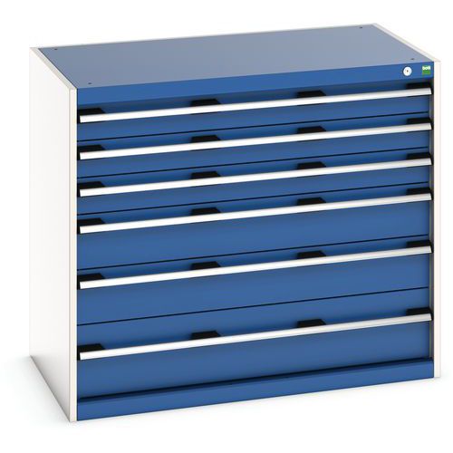 Dielenská zásuvková skriňa Bott Cubio, 90 x 105 x 65 cm, 6 zásuviek, šedá-modrá