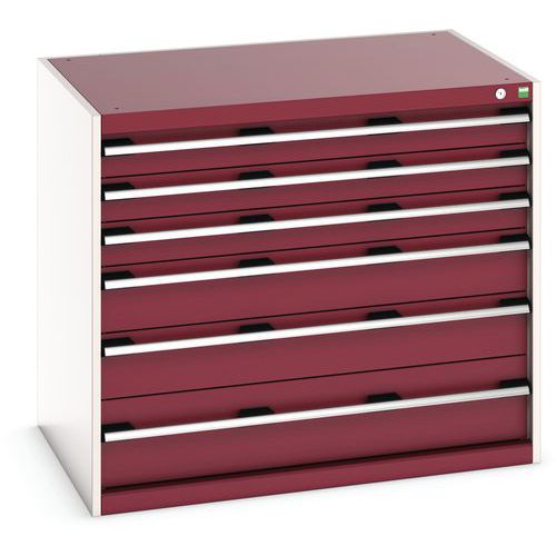 Dielenská zásuvková skriňa Bott Cubio, 90 x 105 x 75 cm, 6 zásuviek, šedá-červená