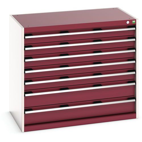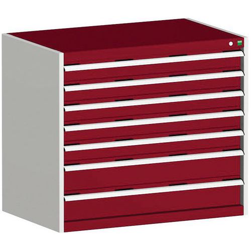 Dielenská zásuvková skriňa Bott Cubio, 90 x 105 x 65 cm, 7 zásuviek, šedá-červená