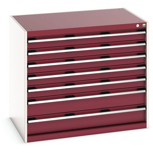 Dielenská zásuvková skriňa Bott Cubio, 90 x 105 x 75 cm, 7 zásuviek, šedá-červená