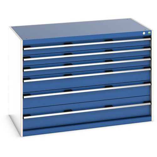 Dielenská zásuvková skriňa Bott Cubio, 90 x 130 x 75 cm, 6 zásuviek, šedá-modrá