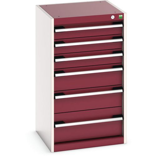 Dielenská zásuvková skriňa Bott Cubio, 90 x 52,5 x 52,5 cm, 6 zásuviek, šedá-červená