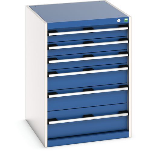Dielenská zásuvková skriňa Bott Cubio, 90 x 65 x 75 cm, 6 zásuviek, šedá-modrá