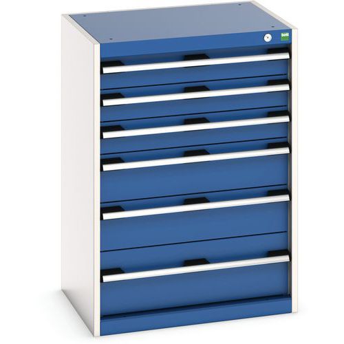 Dielenská zásuvková skriňa Bott Cubio, 90 x 65 x 52,5 cm, 6 zásuviek, šedá-modrá