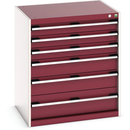 Dielenská zásuvková skriňa Bott Cubio, 90 x 80 x 65 cm, 6 zásuviek, šedá-červená