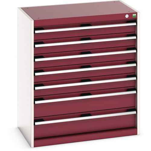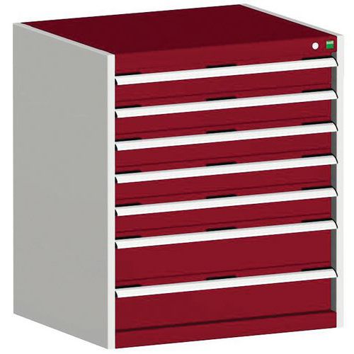 Dielenská zásuvková skriňa Bott Cubio, 90 x 80 x 52,5 cm, 7 zásuviek, šedá-červená