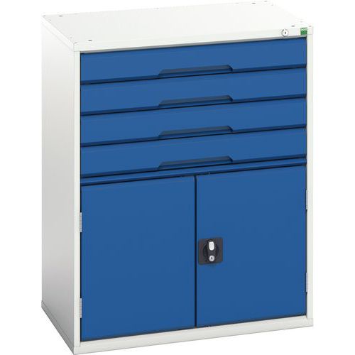 Dielenská zásuvková skriňa Bott Verso, 100 x 80 x 55 cm, 4 zásuvky, 1 skrinka, šedá-modrá