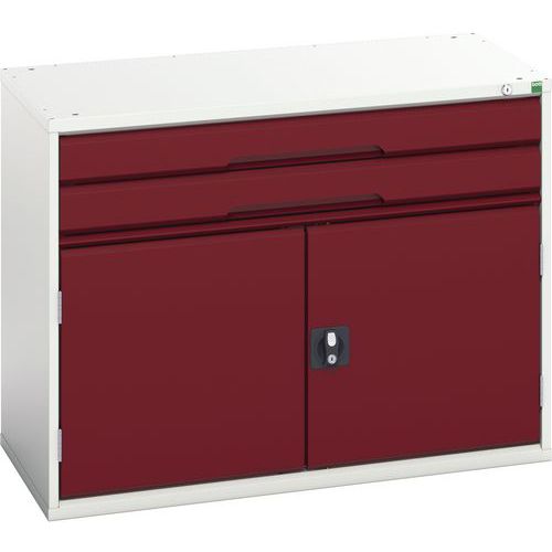 Dielenská zásuvková skriňa Bott Verso, 80 x 105 x 55 cm, 2 zásuvky, 1 skrinka, šedá-červená