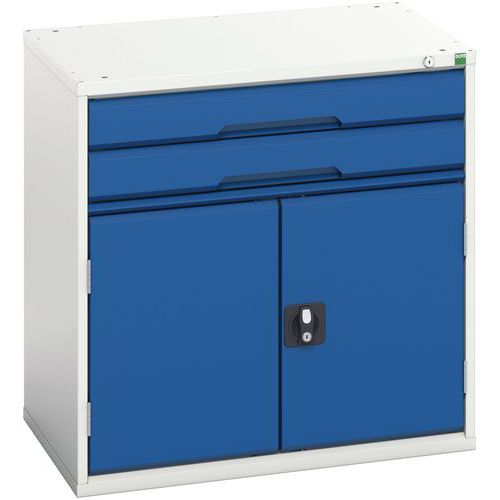 - Kovové dielenské skrine Bott Verso so zásuvkami pre efektívne využitie v prevádzkach a dielňach.