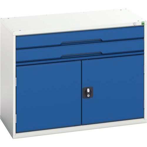Dielenská zásuvková skriňa Bott Verso, 80 x 105 x 55 cm, 2 zásuvky, 1 skrinka, šedá-modrá
