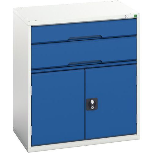 Dielenská zásuvková skriňa Bott Verso, 90 x 80 x 55 cm, 2 zásuvky, 1 skrinka, šedá-modrá