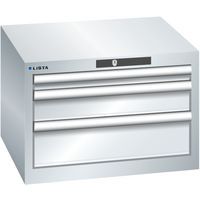 Optimálne využitie vďaka plnému výsuvu a optimálnej výške čela zásuviek. Zámok na kľúč. Vynikajúca ochrana proti prachu, kvapalinám a mechanickému opotrebovaniu vďaka uzavretému rámu s povrchom odolným proti nárazom a oderu. Systém proti prevráteniu, ktorý zabraňuje pádu zásuvky, a individuálne zamykanie zásuviek.Ochrana proti korózii elektroforetickým imerzným lakovaním a striekaním. Ochrana proti korózii elektroforetickým imerzným lakovaním a striekaním. Optimalizované úložné priestory a organizácie vďaka deliacemu materiálu LISTA prispôsobenému každému použitiu a zásuvkám vybaveným drážkami a perforáciami. Profesionálne popisovanie s popisovacím softvérom LISTA Script a výklopnou úchytkou na vkladanie štítkov. Dokonale tichý pohyb vďaka sane bez priečnika Max. zaťaženie (kg) : 75 kg