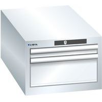 Dielenské zásuvkové skrine Lista, 2 alebo 3 zásuvky. Zámok na kľúč. Cylindrické vložka zámku. Optimálne využitie vďaka plnému výsuvu a optimálnej výške čela zásuviek. Vynikajúca ochrana proti prachu, kvapalinám a mechanickému opotrebovaniu vďaka uzavretému rámu s povrchom odolným proti nárazom a oderu. Systém proti prevráteniu, ktorý zabraňuje pádu zásuvky, a individuálne zamykanie zásuviek. Ochrana proti korózii elektroforetickým imerzným lakovaním a striekaním. Optimalizované úložné priestory a organizácie vďaka deliacemu materiálu LISTA prispôsobenému každému použitiu a zásuvkám vybaveným drážkami a perforáciami. Profesionálne popisovanie s popisovacím softvérom LISTA Script a výklopnou úchytkou na vkladanie štítkov. Dokonale tichý pohyb vďaka sane bez priečnika. Deliaci materiál do zásuviek nie je súčasťou dodávky. Nutné dokúpiť zvlášť. Max. zaťaženie (kg) : 75 kg