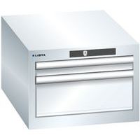 Dielenské zásuvkové skrine Lista, 2 alebo 3 zásuvky. Zamykanie kľúčom. Optimálne využitie vďaka plnému výsuvu a optimálnej výške čela zásuviek. Vynikajúca ochrana proti prachu, kvapalinám a mechanickému opotrebovaniu vďaka uzavretému rámu s povrchom odolným proti nárazom a oderu. Systém proti prevráteniu, ktorý zabraňuje pádu zásuvky, a individuálne zamykanie zásuviek. Ochrana proti korózii elektroforetickým imerzným lakovaním a striekaním. Optimalizované úložné priestory a organizácie vďaka deliacemu materiálu LISTA prispôsobenému každému použitiu a zásuvkám vybaveným drážkami a perforáciami. Profesionálne popisovanie s popisovacím softvérom LISTA Script a výklopnou úchytkou na vkladanie štítkov. Dokonale tichý pohyb vďaka sane bez priečnika Deliaci materiál do zásuviek nie je súčasťou dodávky. Nutné dokúpiť zvlášť. Max. zaťaženie (kg) : 75 kg