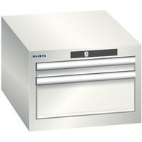 Dielenské zásuvkové skrine Lista, 2 alebo 3 zásuvky. Zamykanie kľúčom. Optimálne využitie vďaka plnému výsuvu a optimálnej výške čela zásuviek. Vynikajúca ochrana proti prachu, kvapalinám a mechanickému opotrebovaniu vďaka uzavretému rámu s povrchom odolným proti nárazom a oderu. Systém proti prevráteniu, ktorý zabraňuje pádu zásuvky, a individuálne zamykanie zásuviek. Ochrana proti korózii elektroforetickým imerzným lakovaním a striekaním. Optimalizované úložné priestory a organizácie vďaka deliacemu materiálu LISTA prispôsobenému každému použitiu a zásuvkám vybaveným drážkami a perforáciami. Profesionálne popisovanie s popisovacím softvérom LISTA Script a výklopnou úchytkou na vkladanie štítkov. Dokonale tichý pohyb vďaka sane bez priečnika Deliaci materiál do zásuviek nie je súčasťou dodávky. Nutné dokúpiť zvlášť. Max. zaťaženie (kg) : 75 kg