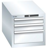 Dielenské zásuvkové skrine Lista, 3 alebo 4 zásuvky. Zámok na kľúč. Cylindrické vložka zámku. Optimálne využitie vďaka plnému výsuvu a optimálnej výške čela zásuviek. Vynikajúca ochrana proti prachu, kvapalinám a mechanickému opotrebovaniu vďaka uzavretému rámu s povrchom odolným proti nárazom a oderu. Systém proti prevráteniu, ktorý zabraňuje pádu zásuvky, a individuálne zamykanie zásuviek. Ochrana proti korózii elektroforetickým imerzným lakovaním a striekaním. Optimalizované úložné priestory a organizácie vďaka deliacemu materiálu LISTA prispôsobenému každému použitiu a zásuvkám vybaveným drážkami a perforáciami. Profesionálne popisovanie s popisovacím softvérom LISTA Script a výklopnou úchytkou na vkladanie štítkov. Dokonale tichý pohyb vďaka sane bez priečnika. Deliaci materiál do zásuviek nie je súčasťou dodávky. Nutné dokúpiť zvlášť. Max. zaťaženie (kg) : 75 kg