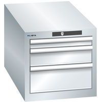 Dielenské zásuvkové skrine Lista, 3 alebo 4 zásuvky. Zámok na kľúč. Cylindrické vložka zámku. Optimálne využitie vďaka plnému výsuvu a optimálnej výške čela zásuviek. Vynikajúca ochrana proti prachu, kvapalinám a mechanickému opotrebovaniu vďaka uzavretému rámu s povrchom odolným proti nárazom a oderu. Systém proti prevráteniu, ktorý zabraňuje pádu zásuvky, a individuálne zamykanie zásuviek. Ochrana proti korózii elektroforetickým imerzným lakovaním a striekaním. Optimalizované úložné priestory a organizácie vďaka deliacemu materiálu LISTA prispôsobenému každému použitiu a zásuvkám vybaveným drážkami a perforáciami. Profesionálne popisovanie s popisovacím softvérom LISTA Script a výklopnou úchytkou na vkladanie štítkov. Dokonale tichý pohyb vďaka sane bez priečnika. Deliaci materiál do zásuviek nie je súčasťou dodávky. Nutné dokúpiť zvlášť. Max. zaťaženie (kg) : 75 kg