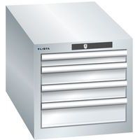 Dielenské zásuvkové skrine Lista, 3 alebo 4 zásuvky. Zámok na kľúč. Cylindrické vložka zámku. Optimálne využitie vďaka plnému výsuvu a optimálnej výške čela zásuviek. Vynikajúca ochrana proti prachu, kvapalinám a mechanickému opotrebovaniu vďaka uzavretému rámu s povrchom odolným proti nárazom a oderu. Systém proti prevráteniu, ktorý zabraňuje pádu zásuvky, a individuálne zamykanie zásuviek. Ochrana proti korózii elektroforetickým imerzným lakovaním a striekaním. Optimalizované úložné priestory a organizácie vďaka deliacemu materiálu LISTA prispôsobenému každému použitiu a zásuvkám vybaveným drážkami a perforáciami. Profesionálne popisovanie s popisovacím softvérom LISTA Script a výklopnou úchytkou na vkladanie štítkov. Dokonale tichý pohyb vďaka sane bez priečnika. Deliaci materiál do zásuviek nie je súčasťou dodávky. Nutné dokúpiť zvlášť. Max. zaťaženie (kg) : 75 kg