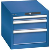 Dielenské zásuvkové skrine Lista, 3 alebo 4 zásuvky. Zamykanie kľúčom. Optimálne využitie vďaka plnému výsuvu a optimálnej výške čela zásuviek. Vynikajúca ochrana proti prachu, kvapalinám a mechanickému opotrebovaniu vďaka uzavretému rámu s povrchom odolným proti nárazom a oderu. Systém proti prevráteniu, ktorý zabraňuje pádu zásuvky, a individuálne zamykanie zásuviek. Ochrana proti korózii elektroforetickým imerzným lakovaním a striekaním. Optimalizované úložné priestory a organizácie vďaka deliacemu materiálu LISTA prispôsobenému každému použitiu a zásuvkám vybaveným drážkami a perforáciami. Profesionálne popisovanie s popisovacím softvérom LISTA Script a výklopnou úchytkou na vkladanie štítkov. Dokonale tichý pohyb vďaka sane bez priečnika Deliaci materiál do zásuviek nie je súčasťou dodávky. Nutné dokúpiť zvlášť. Max. zaťaženie (kg) : 75 kg