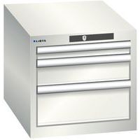 Dielenské zásuvkové skrine Lista, 3 alebo 4 zásuvky. Zamykanie kľúčom. Optimálne využitie vďaka plnému výsuvu a optimálnej výške čela zásuviek. Vynikajúca ochrana proti prachu, kvapalinám a mechanickému opotrebovaniu vďaka uzavretému rámu s povrchom odolným proti nárazom a oderu. Systém proti prevráteniu, ktorý zabraňuje pádu zásuvky, a individuálne zamykanie zásuviek. Ochrana proti korózii elektroforetickým imerzným lakovaním a striekaním. Optimalizované úložné priestory a organizácie vďaka deliacemu materiálu LISTA prispôsobenému každému použitiu a zásuvkám vybaveným drážkami a perforáciami. Profesionálne popisovanie s popisovacím softvérom LISTA Script a výklopnou úchytkou na vkladanie štítkov. Dokonale tichý pohyb vďaka sane bez priečnika Deliaci materiál do zásuviek nie je súčasťou dodávky. Nutné dokúpiť zvlášť. Max. zaťaženie (kg) : 75 kg