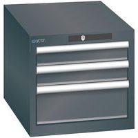 Dielenské zásuvkové skrine Lista, 3 alebo 4 zásuvky. Zamykanie kľúčom. Optimálne využitie vďaka plnému výsuvu a optimálnej výške čela zásuviek. Vynikajúca ochrana proti prachu, kvapalinám a mechanickému opotrebovaniu vďaka uzavretému rámu s povrchom odolným proti nárazom a oderu. Systém proti prevráteniu, ktorý zabraňuje pádu zásuvky, a individuálne zamykanie zásuviek. Ochrana proti korózii elektroforetickým imerzným lakovaním a striekaním. Optimalizované úložné priestory a organizácie vďaka deliacemu materiálu LISTA prispôsobenému každému použitiu a zásuvkám vybaveným drážkami a perforáciami. Profesionálne popisovanie s popisovacím softvérom LISTA Script a výklopnou úchytkou na vkladanie štítkov. Dokonale tichý pohyb vďaka sane bez priečnika Deliaci materiál do zásuviek nie je súčasťou dodávky. Nutné dokúpiť zvlášť. Max. zaťaženie (kg) : 75 kg
