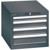 Dielenské zásuvkové skrine Lista, 3 alebo 4 zásuvky. Zamykanie kľúčom. Optimálne využitie vďaka plnému výsuvu a optimálnej výške čela zásuviek. Vynikajúca ochrana proti prachu, kvapalinám a mechanickému opotrebovaniu vďaka uzavretému rámu s povrchom odolným proti nárazom a oderu. Systém proti prevráteniu, ktorý zabraňuje pádu zásuvky, a individuálne zamykanie zásuviek. Ochrana proti korózii elektroforetickým imerzným lakovaním a striekaním. Optimalizované úložné priestory a organizácie vďaka deliacemu materiálu LISTA prispôsobenému každému použitiu a zásuvkám vybaveným drážkami a perforáciami. Profesionálne popisovanie s popisovacím softvérom LISTA Script a výklopnou úchytkou na vkladanie štítkov. Dokonale tichý pohyb vďaka sane bez priečnika Deliaci materiál do zásuviek nie je súčasťou dodávky. Nutné dokúpiť zvlášť. Max. zaťaženie (kg) : 75 kg