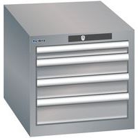 Dielenské zásuvkové skrine Lista, 3 alebo 4 zásuvky. Zamykanie kľúčom. Optimálne využitie vďaka plnému výsuvu a optimálnej výške čela zásuviek. Vynikajúca ochrana proti prachu, kvapalinám a mechanickému opotrebovaniu vďaka uzavretému rámu s povrchom odolným proti nárazom a oderu. Systém proti prevráteniu, ktorý zabraňuje pádu zásuvky, a individuálne zamykanie zásuviek. Ochrana proti korózii elektroforetickým imerzným lakovaním a striekaním. Optimalizované úložné priestory a organizácie vďaka deliacemu materiálu LISTA prispôsobenému každému použitiu a zásuvkám vybaveným drážkami a perforáciami. Profesionálne popisovanie s popisovacím softvérom LISTA Script a výklopnou úchytkou na vkladanie štítkov. Dokonale tichý pohyb vďaka sane bez priečnika Deliaci materiál do zásuviek nie je súčasťou dodávky. Nutné dokúpiť zvlášť. Max. zaťaženie (kg) : 75 kg