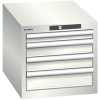 Dielenské zásuvkové skrine Lista, 3 alebo 4 zásuvky. Zamykanie kľúčom. Optimálne využitie vďaka plnému výsuvu a optimálnej výške čela zásuviek. Vynikajúca ochrana proti prachu, kvapalinám a mechanickému opotrebovaniu vďaka uzavretému rámu s povrchom odolným proti nárazom a oderu. Systém proti prevráteniu, ktorý zabraňuje pádu zásuvky, a individuálne zamykanie zásuviek. Ochrana proti korózii elektroforetickým imerzným lakovaním a striekaním. Optimalizované úložné priestory a organizácie vďaka deliacemu materiálu LISTA prispôsobenému každému použitiu a zásuvkám vybaveným drážkami a perforáciami. Profesionálne popisovanie s popisovacím softvérom LISTA Script a výklopnou úchytkou na vkladanie štítkov. Dokonale tichý pohyb vďaka sane bez priečnika Deliaci materiál do zásuviek nie je súčasťou dodávky. Nutné dokúpiť zvlášť. Max. zaťaženie (kg) : 75 kg